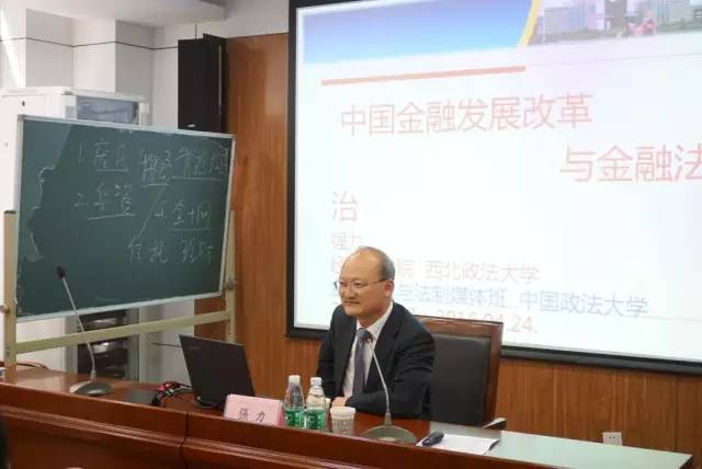 24日下午2:00,西北政法大学经济法学院院长强力教授“中国金融发展改革和金融法治”为主题,从金融与法治原理的再认识、中国金融法制的历史演进、新常态下的金融深化改革与发展诉求、金融深化改革的法治对策四个方面进行讲解。他借用罗伯特·希勒教授名言指出,金融是现代文明的核心,现代金融体制可以避免不平等和不均衡的现象,有助于实现一个良好社会的构建。最后强力教授引用苏格拉底之死的典故告诉大家,法律必须被信仰,否则将形同虚设。
